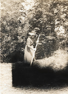 As the surviving relatives didn't like her much, there aren't many photos of her, but here she is (right) surveying her fields with an unidentified woman: